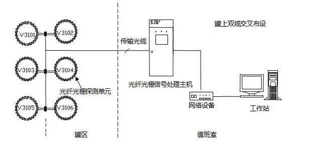按照中石化有关火灾报警技术标准要求,储备油库的火灾报警系统宜采用无电检测技术,光纤光栅感温火灾探测传感系统是目前国际上新型一代无电检测火灾温度探测系统,具有高精度、高灵敏度、安全防爆、抗强电磁干扰、抗雷击、抗腐蚀、可长期实时监测等众多优点,能快速、准确的探测出各类温度异常部位和区域,为及时采取各类安全措施提供可靠依据。